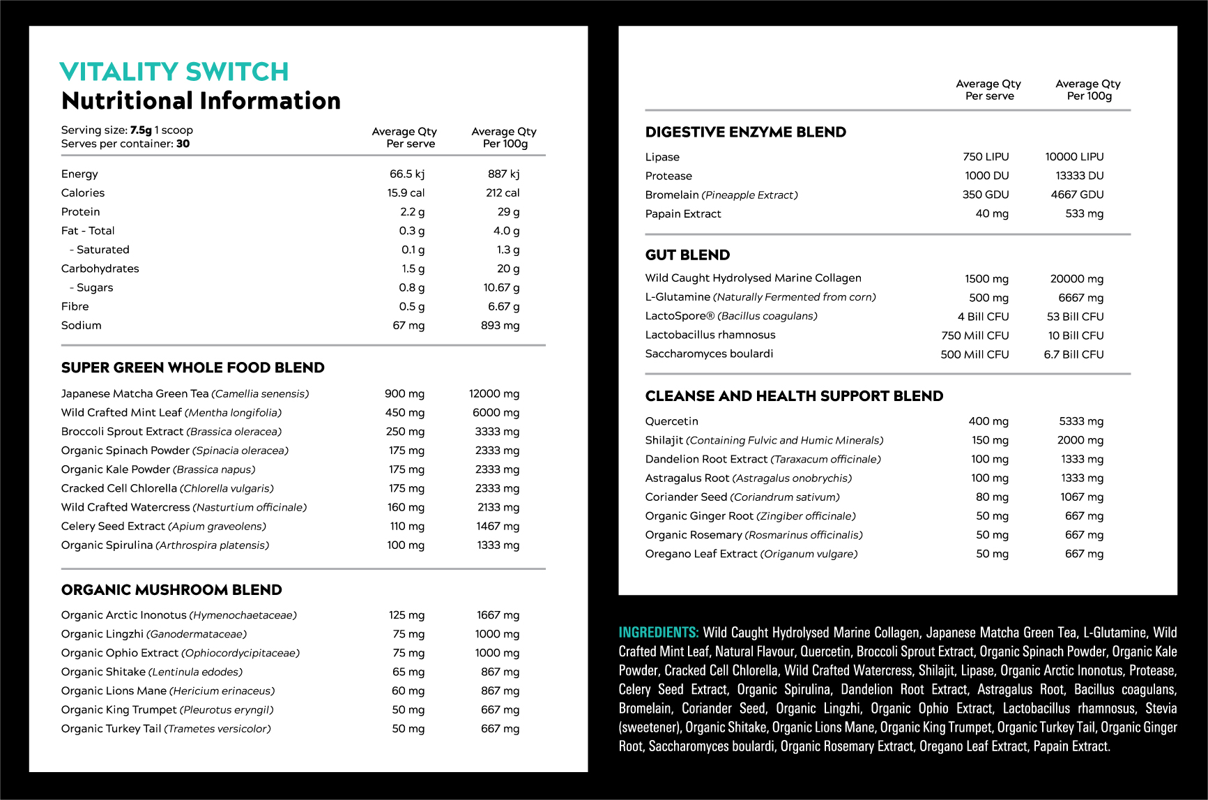 NOTE: The original Vitality Switch™ formula is not Vegan as it contains Wild Caught Sustainable Marine Collagen. This is a key ingredient which is critical to the performance of the product.